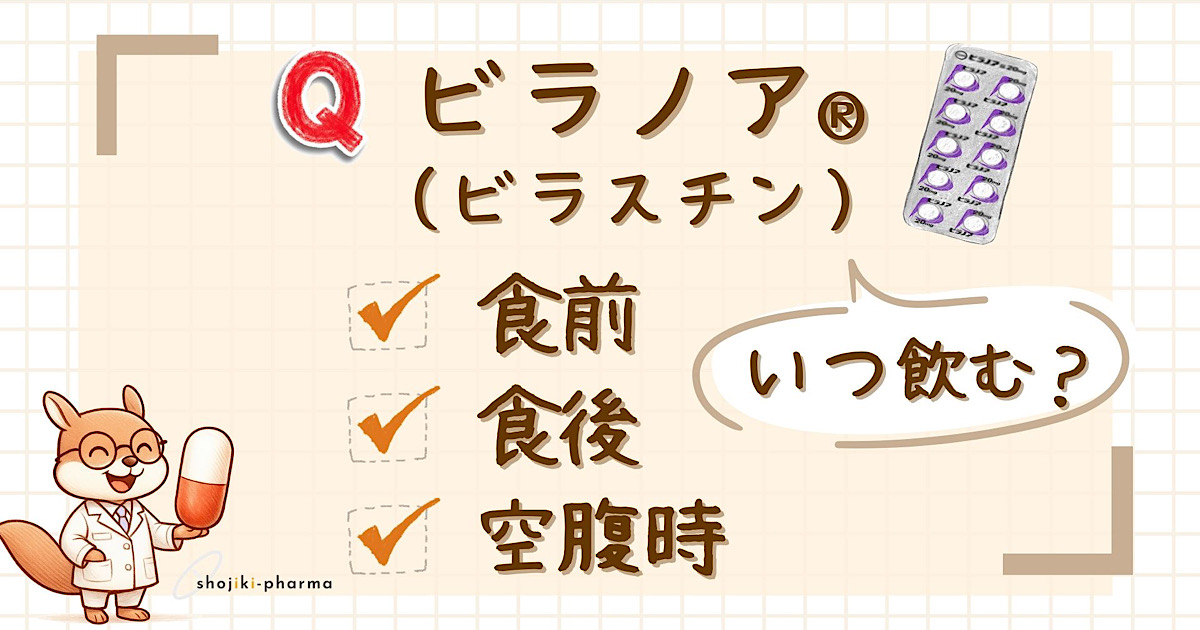 また、ビラノア®(ビラスチン)は食事の影響を受けやすい医薬品ですが、いつ服用すると効果的でしょうか?